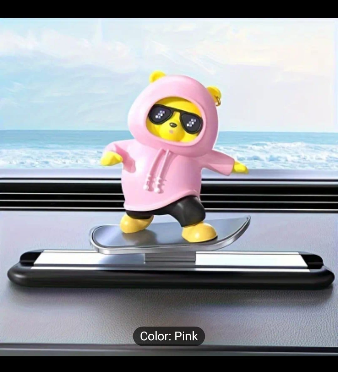 Universal Dashboard Car Ornaments Skateboard Bear - Sliding Bear - Moving Bear - Black Specification:Material: PVC+ AlloyColor: Black, Blue & PinkSize:8*6*3cmFeatures:1. Sliding with vehicle driving. Balls...